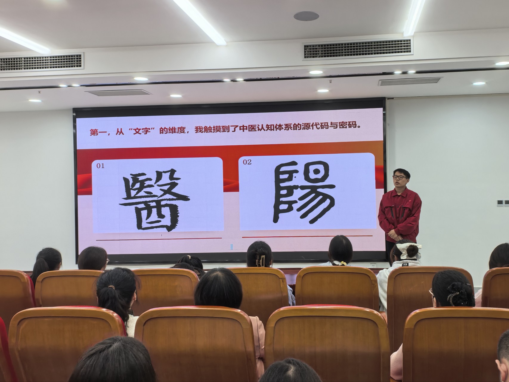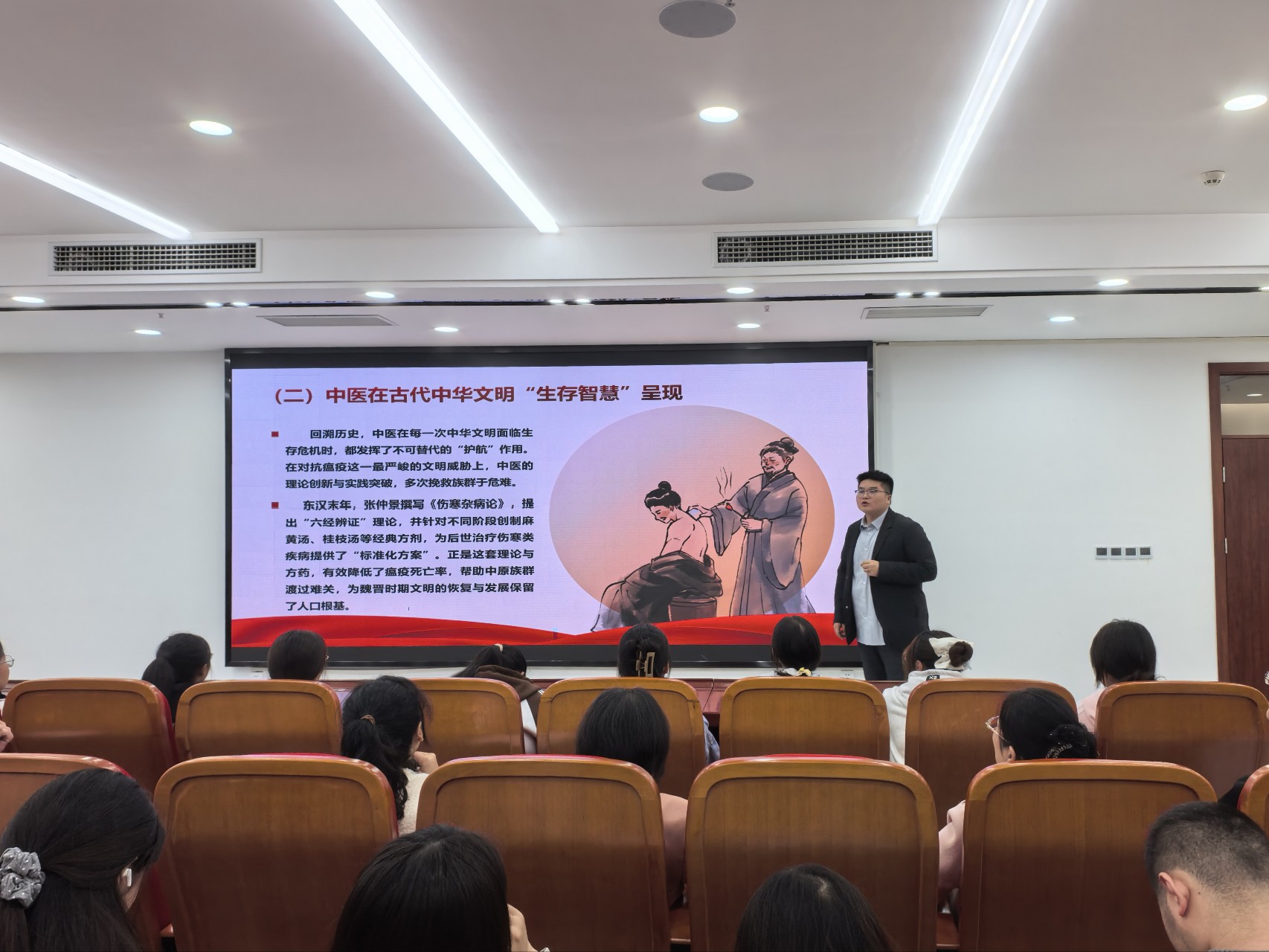 本次思政课由马克思主义学院4名教师联袂授课,围绕“文字、文化、文明、文脉”四大维度,以“医”“药”二字为切入点,通过解读汉字字形演变,挖掘中医药文化内涵,让学生直观感受中华优秀传统文化的当代生命力。教师们系统梳理中医药与中华文明的交织历程,指出中医药是“自然规律、人文理念与医学实践深度融合的生存智慧”,强调“文脉是中医药跨越千年的传承纽带”,提出文化传承需结合专业实践动态创新,引导同学们要坚定文化自信,筑牢专业根基,传承“医者仁心”。