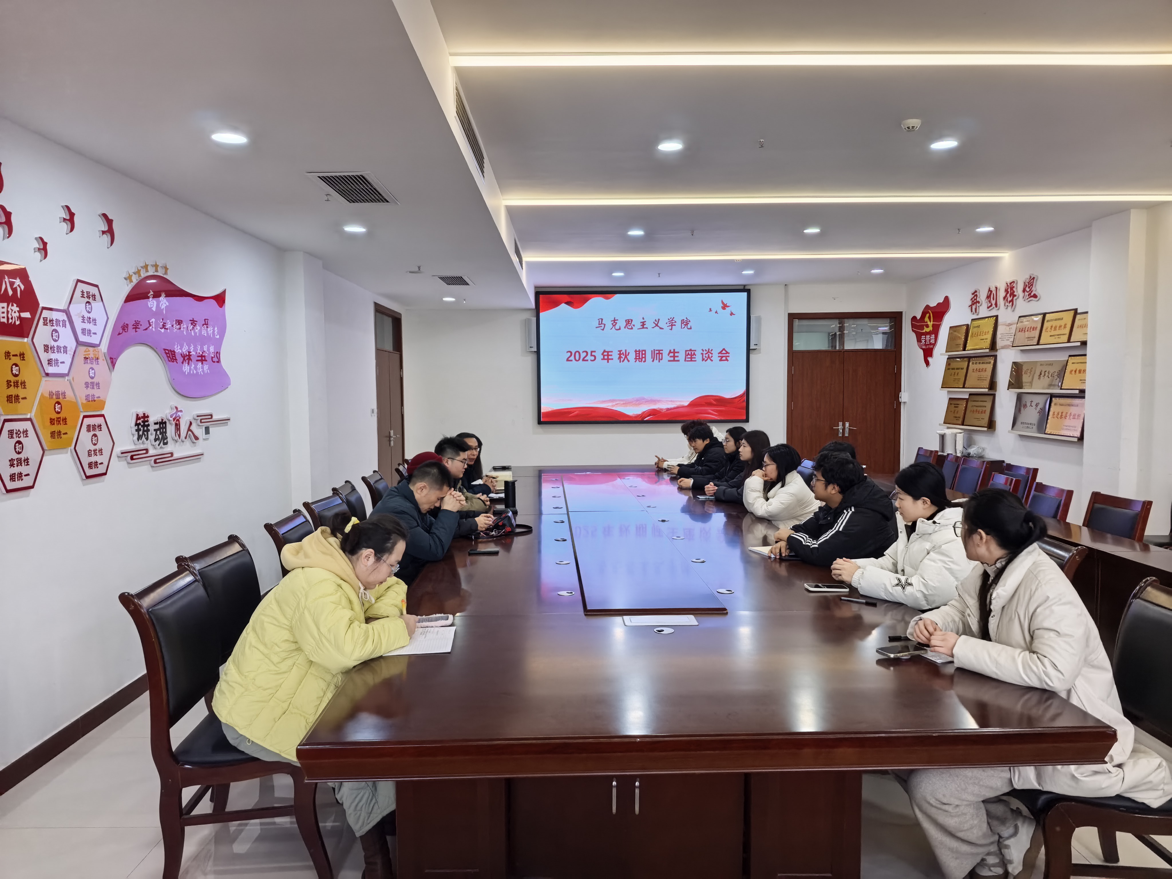 (文/马克思主义学院 王雨壮)2025年12月24日下午,马克思主义学院在五楼会议室组织召开师生交流座谈会。座谈会由《习近平新时代中国特色社会主义思想概论》教研室主任石保山主持,全体任课教师及10余名24级学生代表参加。