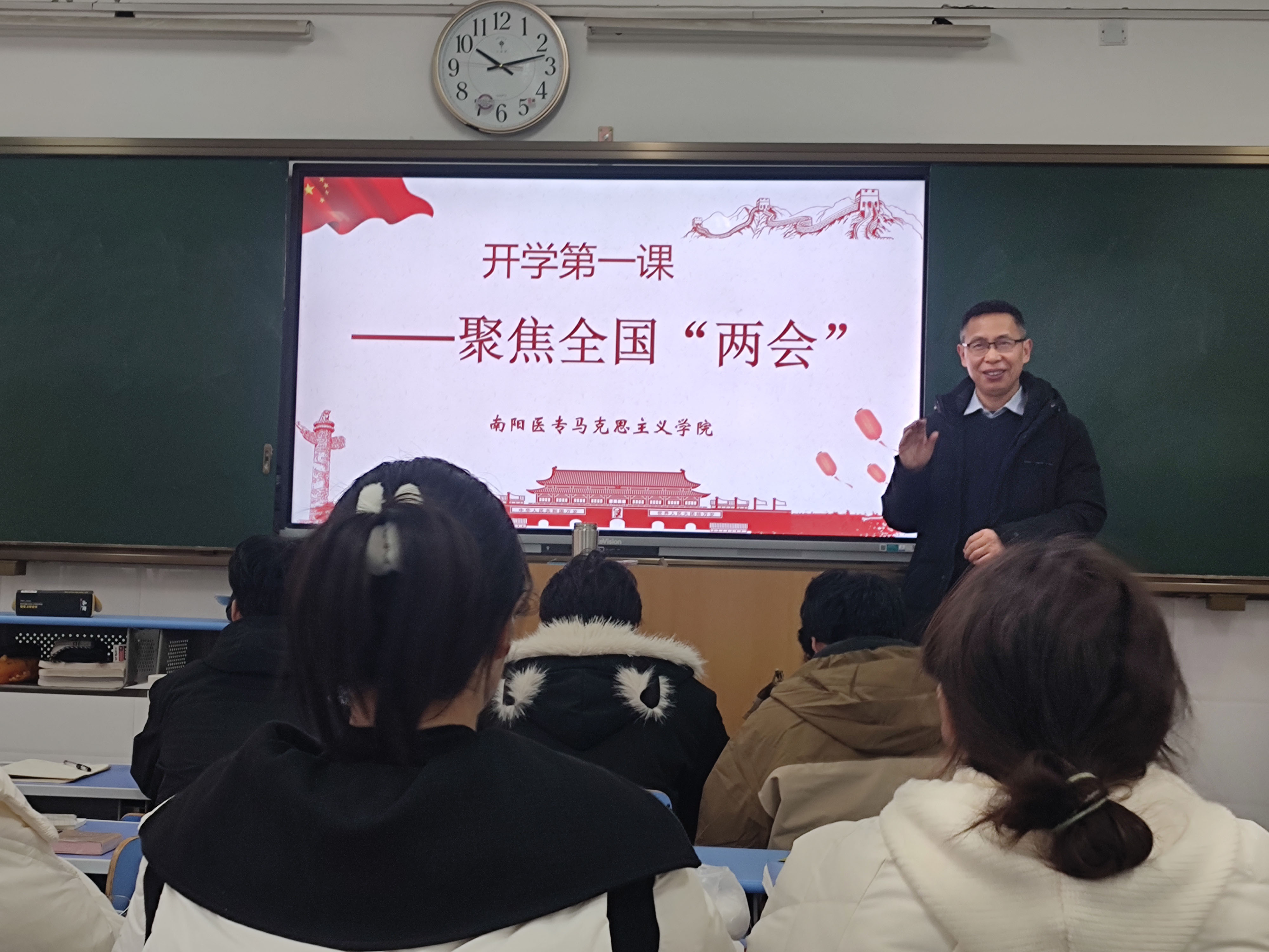 马克思主义学院在2026年全国两会召开之际,第一时间为全校学生宣讲两会精神,全力将两会精神全面融入课堂教学各环节、贯穿人才培养全过程,为整学期马克思主义学院教学工作顺利开展打下了良好基础。