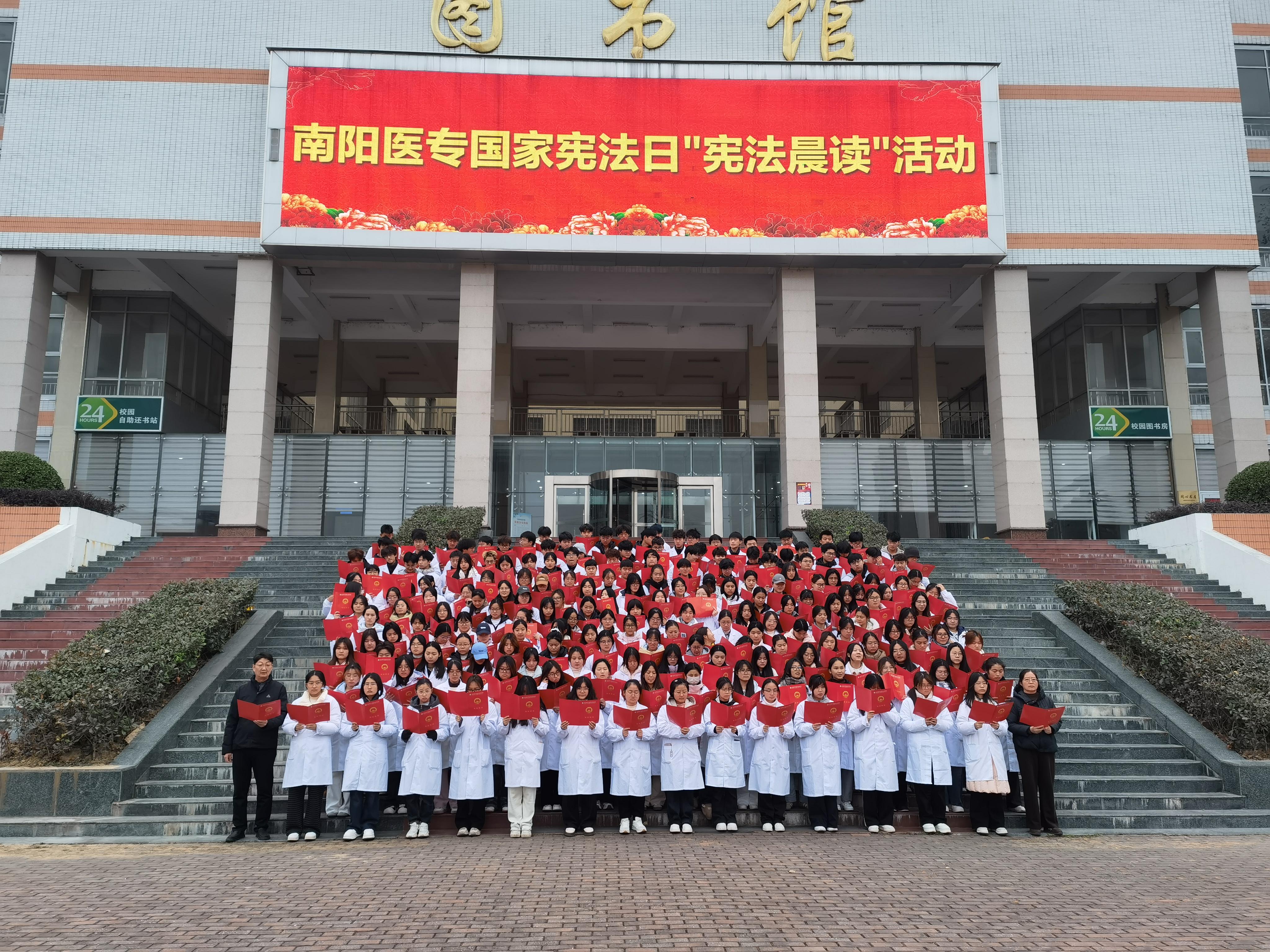 在第十二个宪法日来临之际,12月4日上午9点,马克思主义学院在图书馆前组织开展《思想道德与法治》实践课——“宪法晨读”活动。